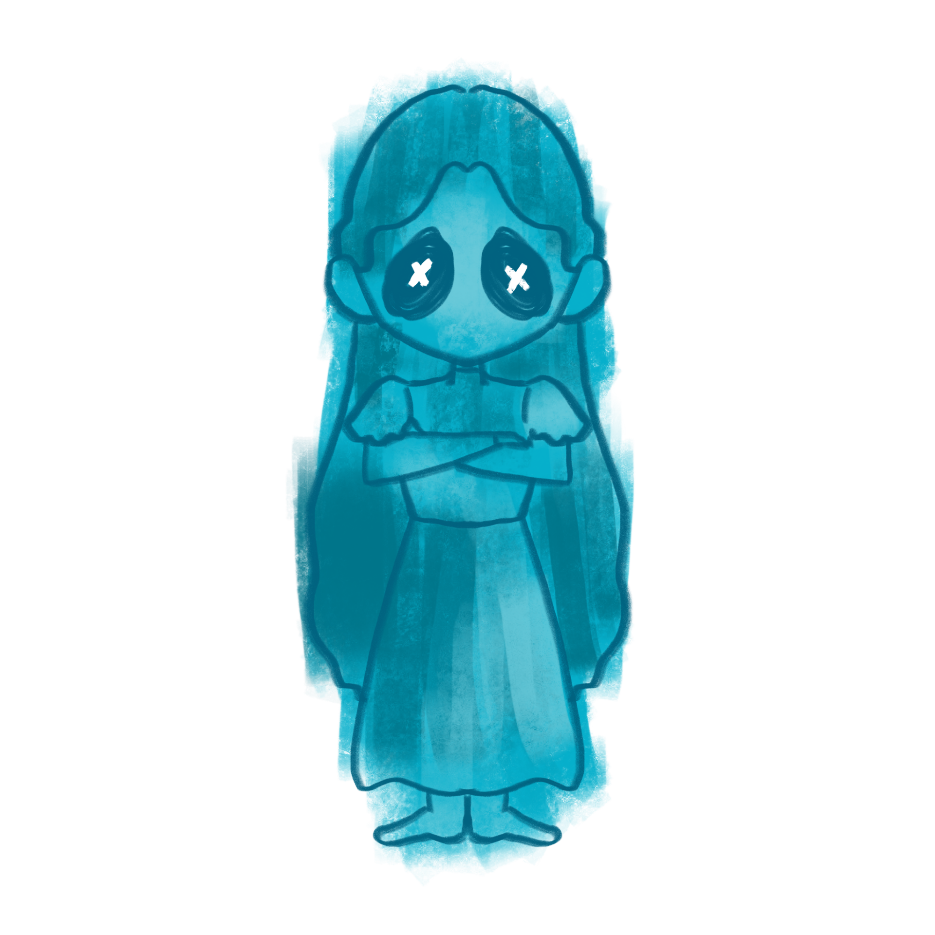 Characterised by this light blue, to make it clear that they are not part of the world of the living and are of no threat to the player.